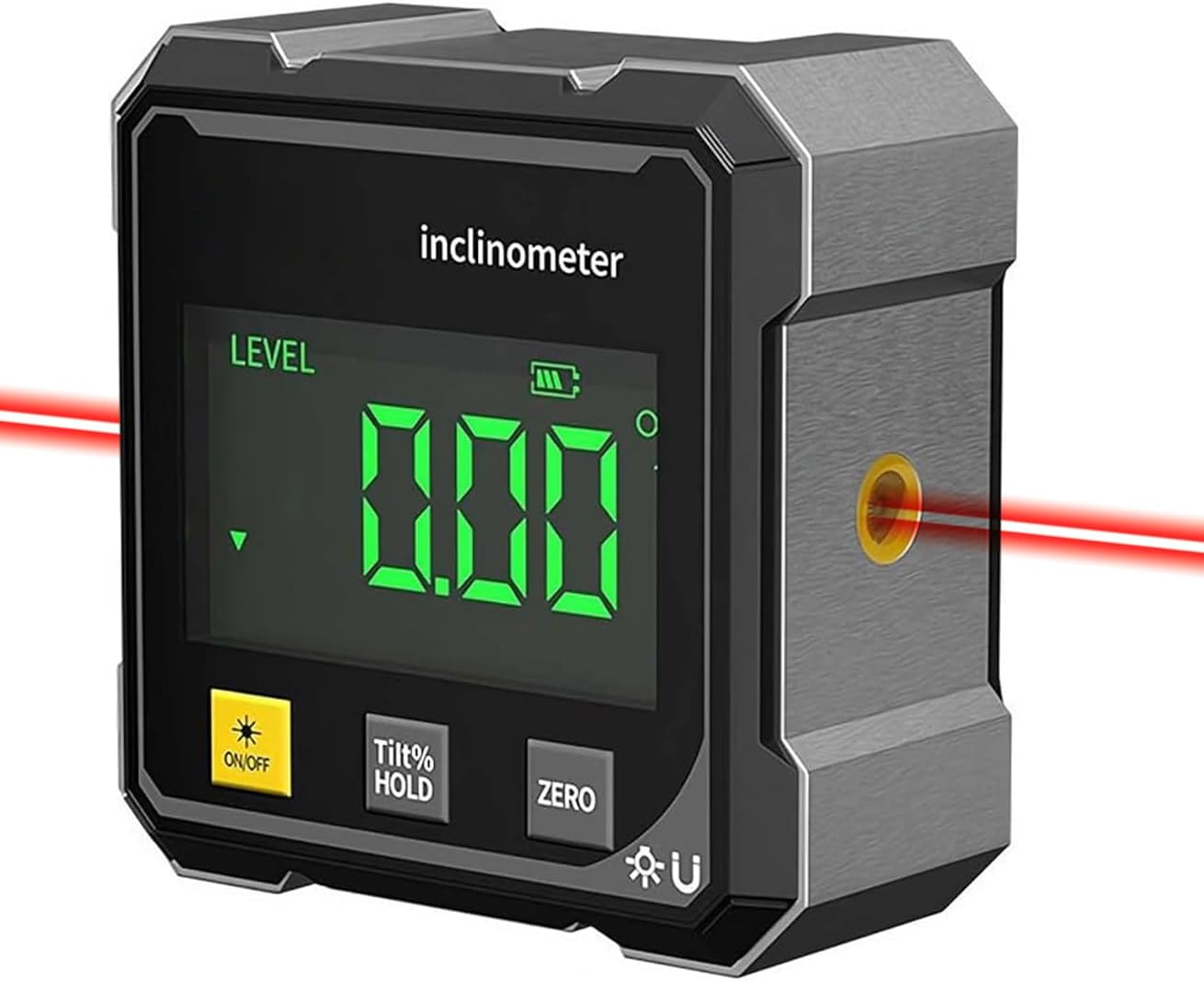 USER-FRIENDLY CONTROLS – The large digital screen ensures clear angle or slope readings even in dimly lit areas. Intuitive buttons for mode switching, laser activation, and data hold make complex tasks simple and error-free.